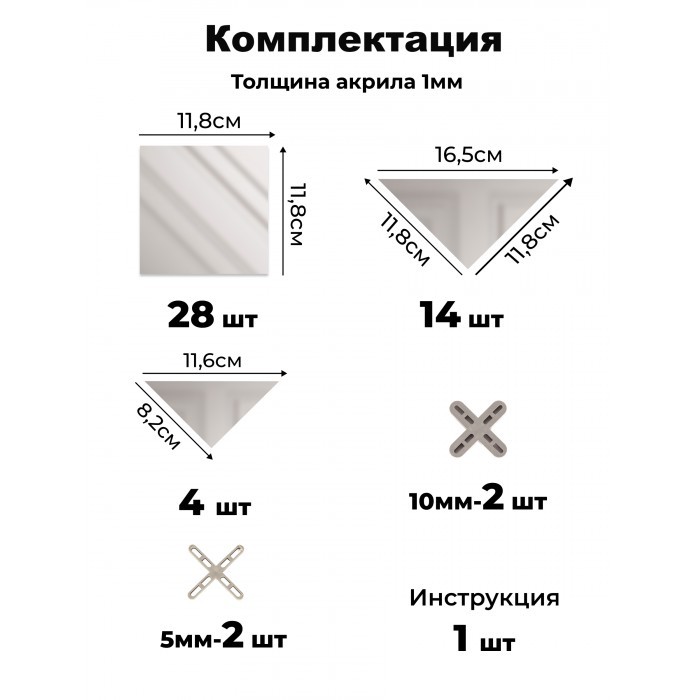 Интерьерные зеркальные наклейки Панно Квадраты 46 шт (50*100 см, толщ 1мм) 263087