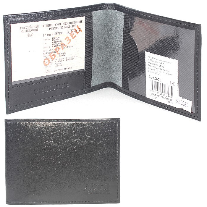 Обложка для автодокументов Premier-О-73 (компакт) натуральная кожа черный ладья (327) 193325