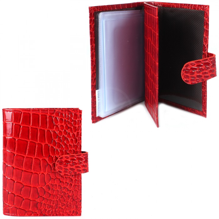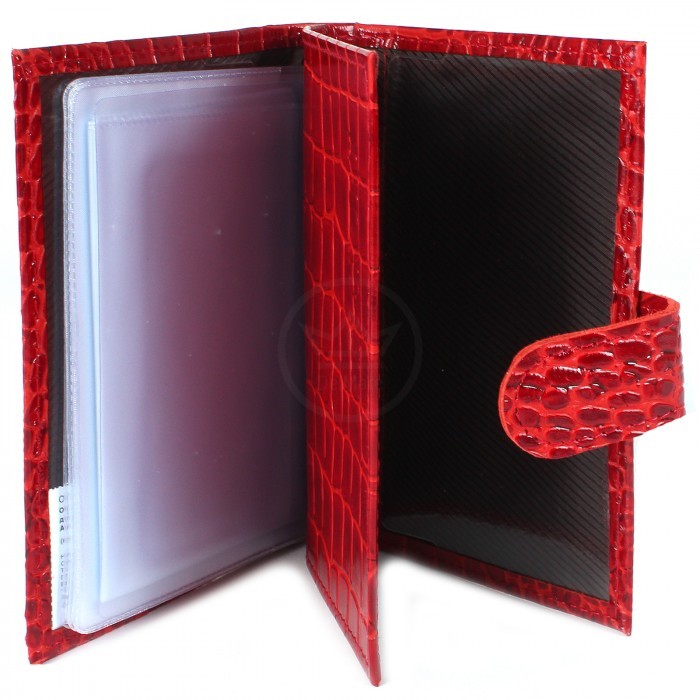 Обложка для авто+паспорт-Croco-ВП-1021 с хляст, натуральная кожа красный крокодил (203) 214083