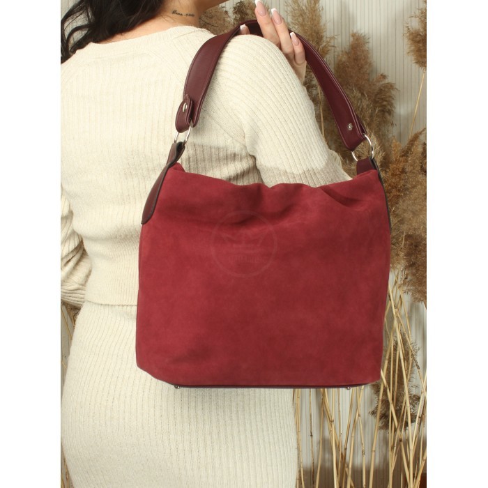 Сумка женская натуральная замша ADEL-296-405 (отделка ИСК/КОЖА), 1 отд/плеч рем, бордо 266023